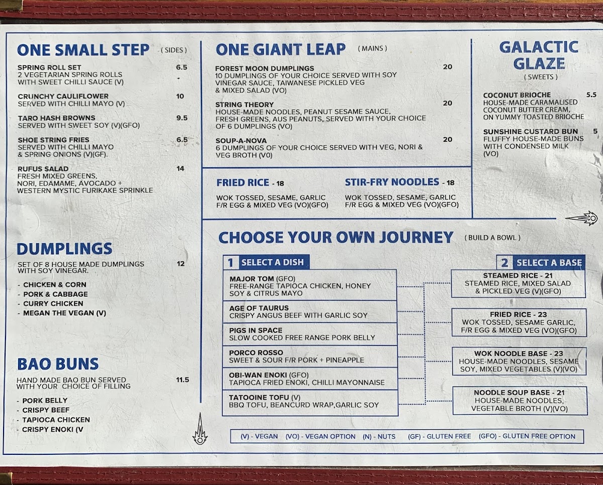 If you crave something heartier, indulge in their comforting noodle soups like the ObiWan Enoki Soup and Tapioca Chicken Soup, both at A$24. The restaurant's Choose Your Own Journey bowl allows diners to mix and match flavors, with options like Pigs In Space and Major Tom, each for A$28.